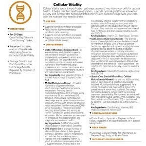 Cellular Vitality keeps the purification pathways open and nourishes your cells for optimal health. It helps maintain healthy methylation, supports optimal glutathione antioxidant activity, and incorporates herbal extracted vitamins and co-factors to provide your cells with the nutrition they need to thrive.